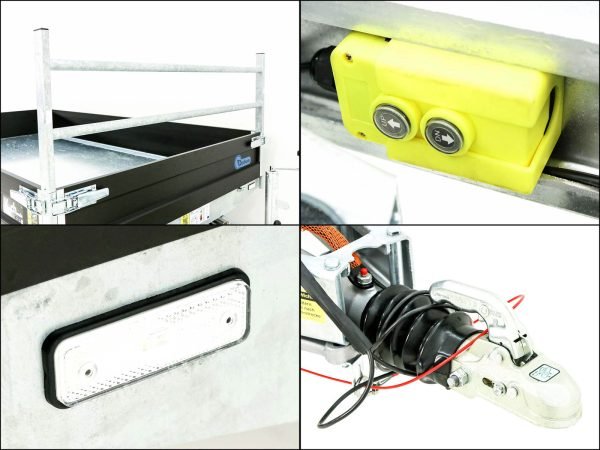 – Achse und Zugrohr komplett feuerverzinkt | Gummifederachse | V-Deichsel mit Zugkugelkupplung | Automatik-Schwerlaststützrad